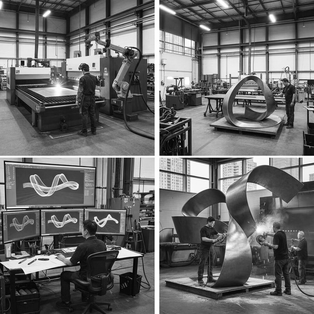제작 과정에서는 각 분야의 전문성을 갖춘 다양한 전문가들이 모여 컨소시엄을 구성, 긴밀한 협력을 바탕으로 진행됩니다. 이를 통해 설계, 소재 선정, 제작, 마감, 조명 설계 등 모든 단계에서 품질과 완성도를 극대화하고 있습니다. 국내외 최고 수준의 스테인리스 및 FRP 조형물 제작 공장과 협업하여, 제작 공정별로 엄격한 품질 관리를 시행하며 신속한 납기를 보장합니다. 예를 들어, 00 소재의 파트너 공장에서는 최신 밴딩 및 용접 기술을 도입해 미세한 표면 결함 없이 매끄러운 금속 표면을 완성하며, LED 조명 결합을 위한 정교한 배관 설계까지 완성하여 미적 완성도를 극대화하고 있습니다.